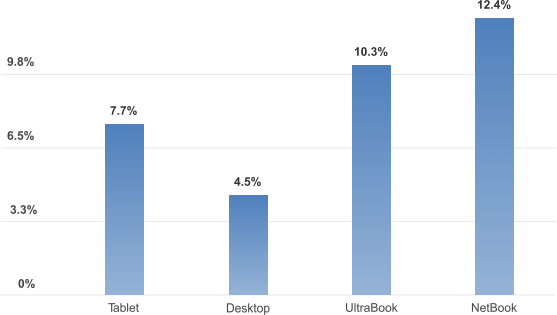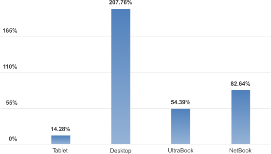 - The Desktop, with an 8-core processor, realized modest 3.6% gains